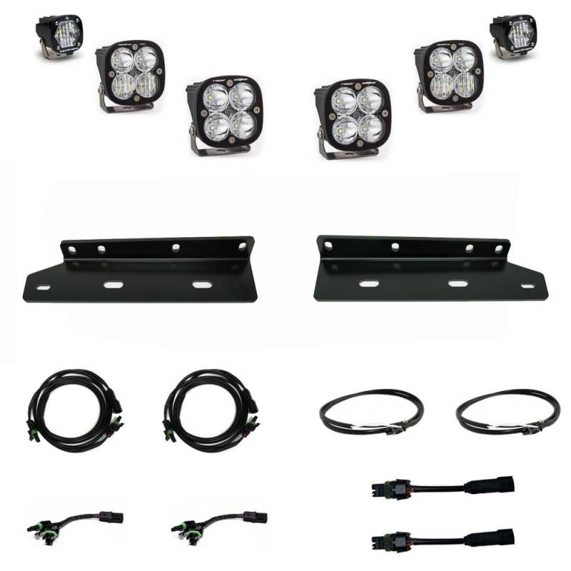 Squadron Unlimited/S1 Fog Pocket Light Kit Separate your truck from the pack with the Baja Designs Ford Raptor "Unlimited" Fog Light Kit. This kit utilizes two Squadron Pros (4,600 lumens each), two Squadron racers (4,300 lumens each), and two S1s (2,375 lumens each). This mounting kit includes two vehicle specific mounting brackets and a wiring harness, allowing you to use your factory switch. US Patent Number 11273751.