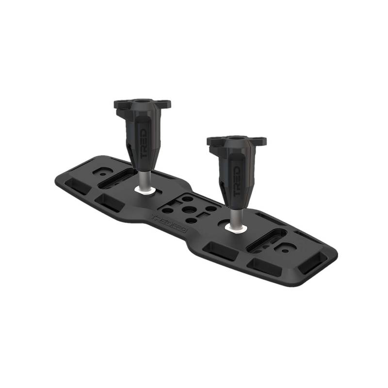 TRED Quick Release Mounting Kit for 2 or 4 Recovery Boards The TRED Quick Release Mounting Kit makes installing a recovery board to your vehicle or trailer a breeze. The combo of TRED Mounting Baseplate and TRED Quick Release Pins with a ratchet handle design allows for quicker and more user-friendly operation. Lockable with a padlock for added security (TRED recommends a 30mm padlock with a 5mm shackle) Unique design will mount up to four TRED GT, HD, or PRO model recovery boards Stainless steel hardware for securing the pins to baseplate is included Recessed plate mount securing holes Flush slot covers included