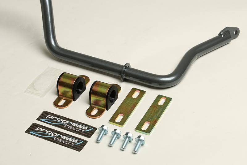 Progress Tech sway bars dramatically improve handling. How? They minimize the traction-robbing body "lean" that rolls part of the outside tires off the pavement. Our Sport-tuned Sway Bars replace smaller OEM sway bars and rubber bushings with larger diameter alloy steel bars and harder polyurethane bushings. Adding more "roll stiffness" means less body "lean" or "sway" and the tires remain flatter and better-connected to the pavement. The larger and more stable tire contact patches result in more grip, control and added driver confidence. Chassis tuning with larger and/or adjustable sway bars is a simple and effective method to improve chassis balance and minimize the excessive understeer (or plowing) so common in our modern vehicles. Progress Tech Sway Bars are cold-formed in-house using our precision CNC bending equipment. Both laser-cut and CNC-machined sway bar ends are MIG-welded in place using precise fixtures for an exact fit. All Progress Tech Sway Bars are developed and manufactured in-house and proudly made in the USA.