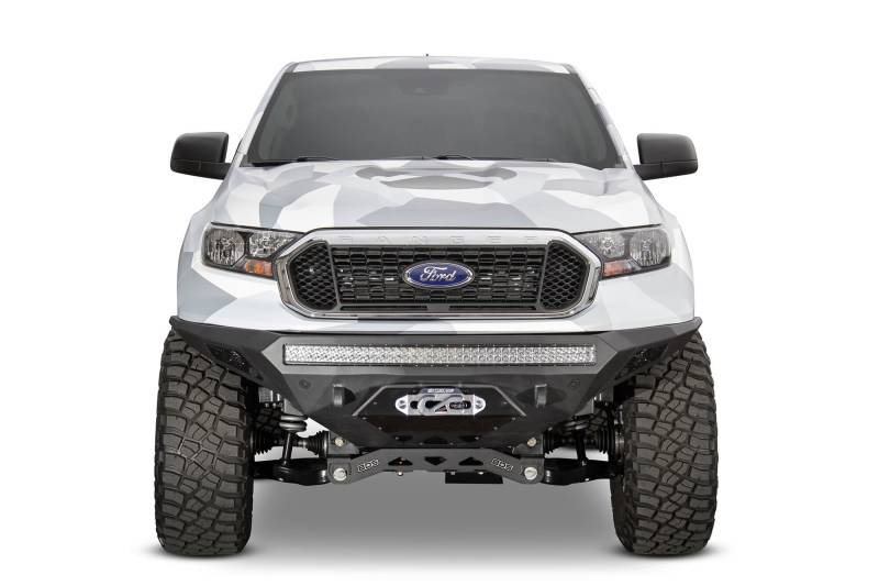 Stealth Fighter Front Bumper Give your Ford Ranger an upgrade with the Stealth Fighter steel plate front bumper. A modern radius plate design allows the Stealth Fighter bumper to keep a tight fit to the front of the truck, while also providing your Ford Ranger with additional front-end protection. Each Stealth Fighter bumper comes equipped with our patented universal light mount system in the center of the bumper. Mount up to 10 cube lights or a 40" radius light bar. Mix and match any brand and size light to give your Ford Ranger the optimal lighting setup that you need on your off-road adventures. Additional lighting behind the side panels can mount a single cube light per side. Reinforced clevis mounts are designed to accept 3/4" D-Rings for extra added utility.