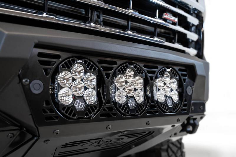 Bomber Front Bumper The Addictive Desert Designs Bomber Front Bumper for the 2020 and up Chevy 2500 is a slim fitting bumper. It's made with plate steel and has full 3/16" aluminum skid plates, as well as reinforced mounts for 3/4" D-Rings.