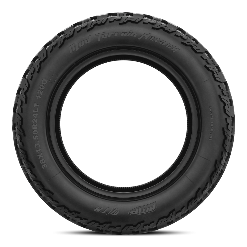 TERRAIN ATTACK M/T AMP TIRES OFFERS THE BEST CHOICES FOR DRIVERS WHO REQUIRE HIGH-TRACTION TIRES THAT WON'T LOSE THEIR GRIP. FROM OUR ATTACK M/T TIRE THAT IS DESIGNED SPECIFICALLY FOR OFF ROAD ENVIRONMENTS TO THE GRIPPER A/T THAT HANDLES THE ROAD TO THE ROCKS AMP HAS THE RIGHT TIRE FOR YOU. PERFORMANCE SIDEWALL DESIGN - REINFORCED SIDEWALL BOASTS AGGRESSIVE "A" SHAPED LUG DESIGN WHICH PROVIDES DYNAMIC BITING EDGES AGGRESSIVE TREAD PATTERN - THE TREAD PATTERN IS AGGRESSIVELY DESIGNED TO REMOVE MUD DIRT SNOW AND DEBRIS WHILE KEEPING CONTINUOUS CONTACT FOR SUPERIOR OFF ROAD TRACTION AND BETTER ON-ROAD CONTROL STAGGERED SHOULDER DESIGN - THE UNIQUE SHOULDER DESIGN PROVIDES A STAGGERED TREAD PATTERN THAT PROVIDES ADDITIONAL TRACTION IN THE ROCK MUD AND SNOW ALONG WITH INCREASED TRACTION AND HANDLING FOR BETTER ON-ROAD PERFORMANCE DYNAMIC SIPE AND DEEP CHANNEL DESIGN - THE DEEP SIPES AND DISTINCT CHANNEL DESIGN SIGNIFICANTLY INCREASE TRACTION IN WET CONDITIONS