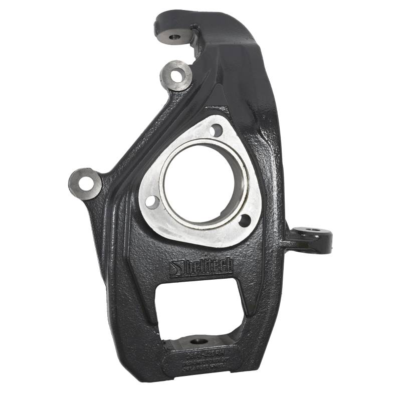 In 1983, Belltech developed one of the industry's first revolutionary products to help jump start the Sport Truck craze, the Drop Spindle. By relocating the spindle pin (Note: Application, while improving handling and retaining factory ride quality. Belltech spindles maintain critical suspension geometry and eliminate excessive ball joint, shock and tire wear common to other methods of lowering. Each spindle is crafted from powder coated, CNC machined, high strength ductile iron castings providing the structural integrity to meet and exceed all factory specifications & requirements.