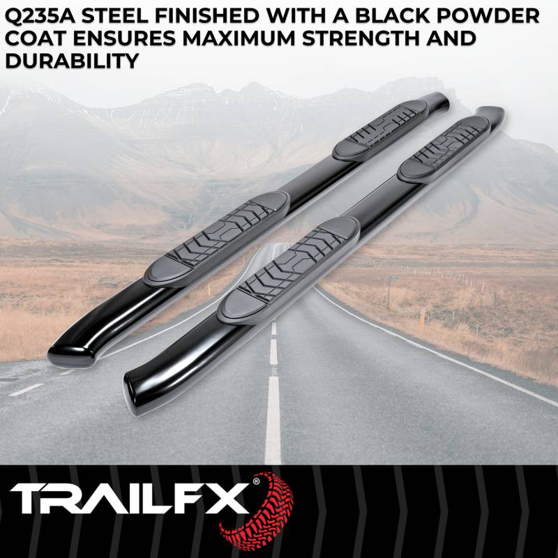 5 Inch Oval Bent Powder Coated Black Steel Rocker Panel Mount When it comes to your truck or SUV, you want quality, style, protection, and durability at a price you can afford. TrailFX offers you an array of products, whether it is for work or play, TrailFX has something for everyone's needs. Step bars to grille guard Rocker Panel Mount Has A 300 Pounds Capacity Limited 3 Year Warranty