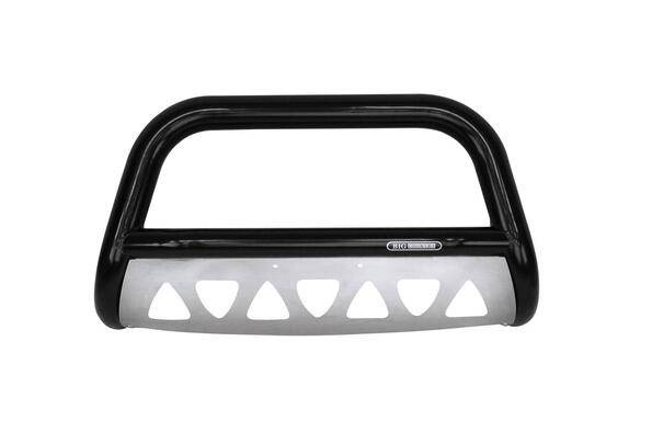 Dakar Pro Bull Bar (Front Guard Only) Dakar Pro. Heavy duty tubular construction available in 2.5" for CUV's or 3" for SUV's and trucks. Stainless steel skid plate is included. Includes two mounting tabs for driving lights. Easy bolt-on, no drill installation. UV resistant black powder coat with a 5 year warranty. No-drill installation brackets sold separsately Includes two mounting tabs for driving lights Stainless steel skid plate is included 3" diameter tubular steel for trucks and SUV's