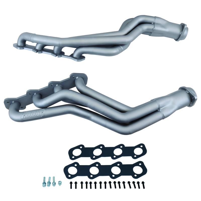1997-2003 FORD F150 TRUCK 4.6L 5.4L 1-5/8" LONG TUBE HEADERS (TITANIUM CERAMIC) BBK Performance full length long tube exhaust headers offer unsurpassed quality and fitment using top quality materials and American craftsmanship. Every long tube exhaust header system is hand built with CNC mandrel bent tubing for unrestrictive exhaust flow and maximum performance, 3/8" laser cut flanges, patented scavenging collector design and gasket less ball and socket connectors for easy installation. Every exhaust header has been designed specifically for your application to get the most horsepower and torque out of the engine. BBK long tube exhaust headers outperform the competition in quality value and performance. All headers are a direct fit bolt on replacement when used with the correct matching mid-pipes which are available with high flow catalytic converters. Our decades of exhaust design and experience make BBK Performance your number one choice for late model American car and truck performance exhaust. Titanium Ceramic Finish - Direct Bolt On - Requires Mid Pipe Part Number 35301 To Complete Installation
