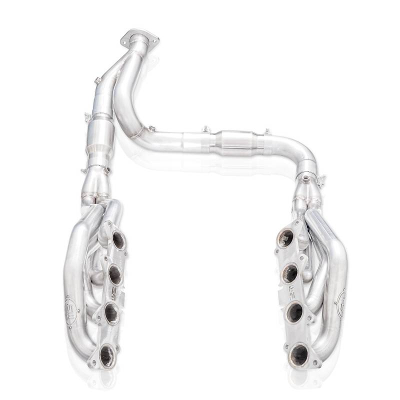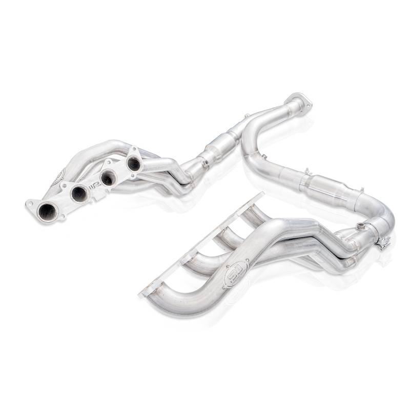 Improve the sound and performance on your Ford F-150 with premium headers from Stainless Works. American-Made and designed for the 2015-2020 Ford F-150 5.0L, these headers feature 1-7/8" primary tubes that are CNC mandrel bent to increase air flow, and engineered to create power. These headers come with 3" slip-fit collectors, as well as high-flow catalytic converters that flow into 3" lead pipes, merging into a Y-pipe to allow an easy connection to your factory exhaust. Built from corrosion resistant 304 stainless steel, our headers are TIG welded for strength and durability at our state-of-the-art facility in Streetsboro, Ohio. We stand by our products with a lifetime warranty on material and craftsmanship, and as always, our products are proudly made in the USA.
