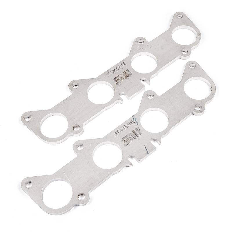 Ford 5.0L Coyote and 5.2L motor round port shaped header exhaust flanges. These flanges come as a pair and are designed for 1-3/4" primaries, laser-cut from heavy-duty 3/8" thick 304 stainless steel for superior resistance to warping from high heat, and comes with a limited lifetime warranty.