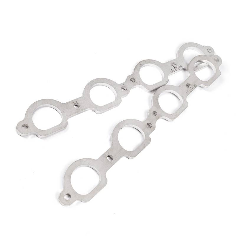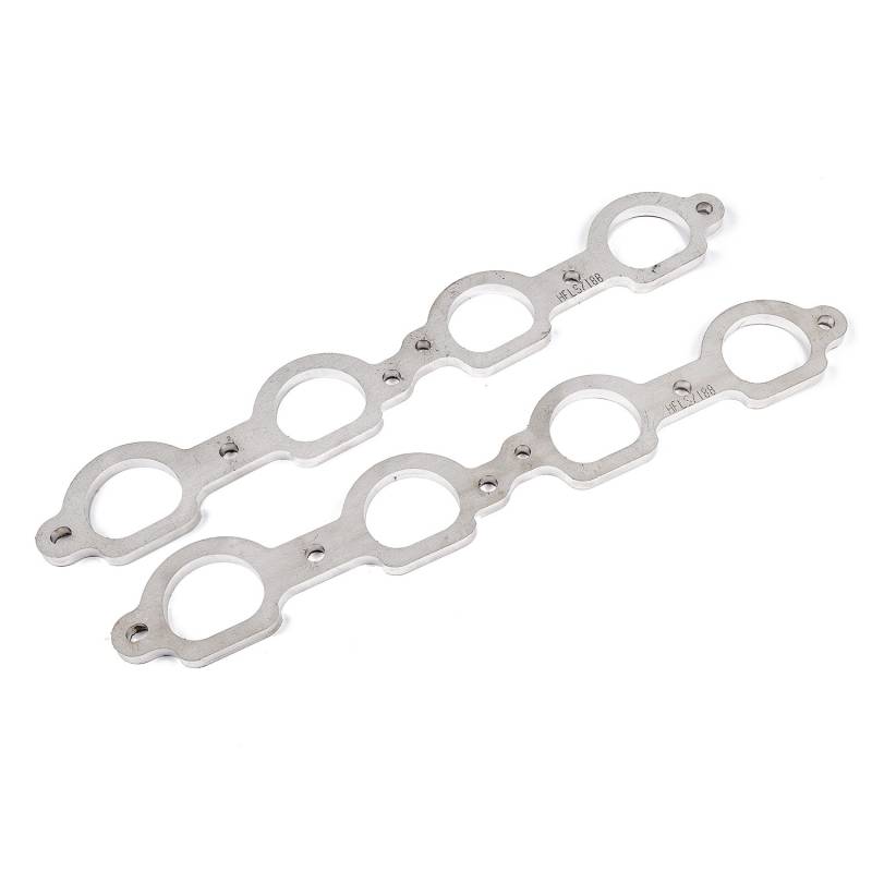 LS7 Chevrolet D-port shaped header exhaust flanges. These flanges come as a pair and are designed for 1-7/8" primaries, laser-cut from heavy-duty 3/8" thick 304 stainless steel for superior resistance to warping from high heat, and comes with a limited lifetime warranty.