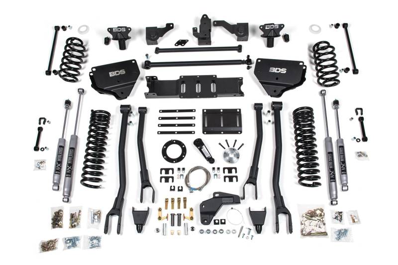 Go big with the BDS Suspension engineered 8-inch lift kit with 4-Link conversion for your 2014-2018 RAM 2500 diesel powered truck. Designed to improve stance, performance, and capability, this kit includes everything necessary to set your truck up right with clearance for up to 40 inch Tires.