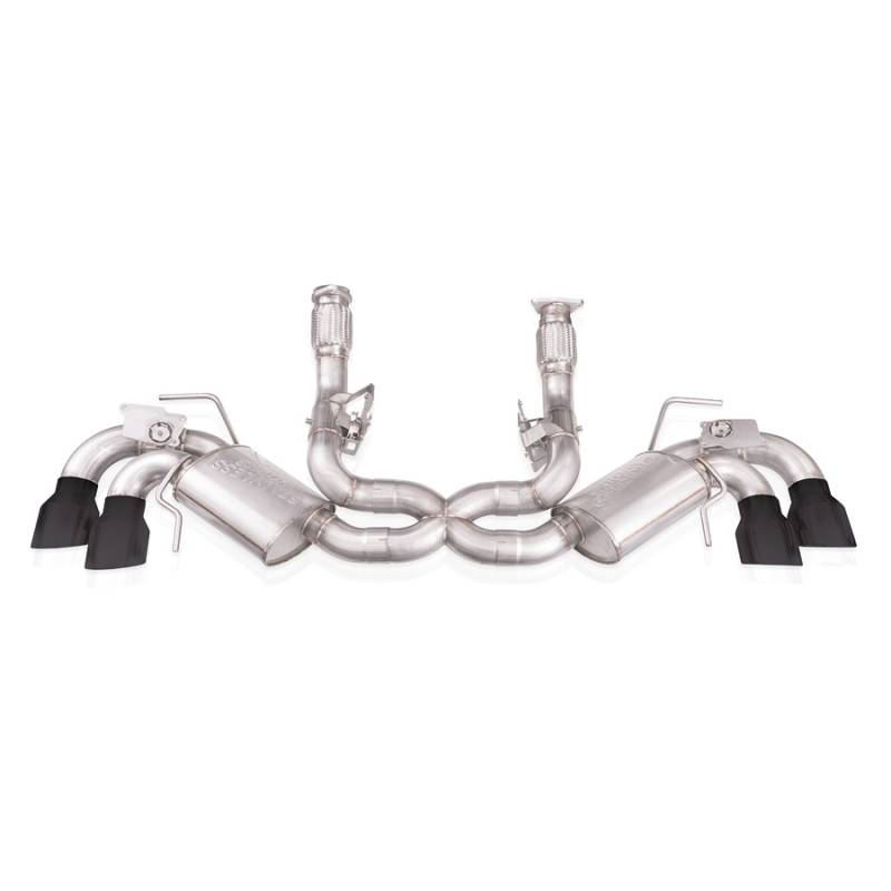 Improve the sound and performance on your 2020-21 Corvette C8 with this Legend sound catback from Stainless Works. We've engineered a drone free aggressive muffler tuned specifically for the 6.2L engine. This system features an X-pipe, tuned mufflers and quad 4-1/2" matte black slash-cut double wall tips. Designed to fit to Stainless Works Midpipes or the stock manifolds and cats.
