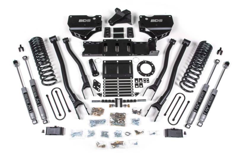 Raise your RAM 3500 gas powered truck to the next heights with this 4-inch lift kit with 4-Link conversion from BDS Suspension. Designed to improve stance, performance, and capability, this kit includes everything necessary to set your truck up right with clearance for up to 35 inch Tires.