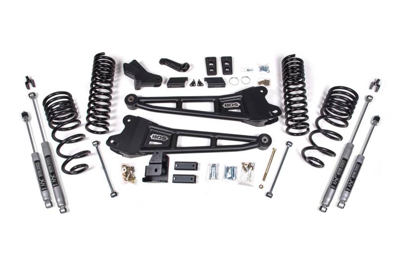 Take your 2014-2018 RAM 2500 gas powered truck to the next level with this 4-inch radius arm lift kit from BDS Suspension. Designed to improve stance, performance, and capability, this kit includes everything necessary to set your truck up right with clearance for up to 35 inch Tires.