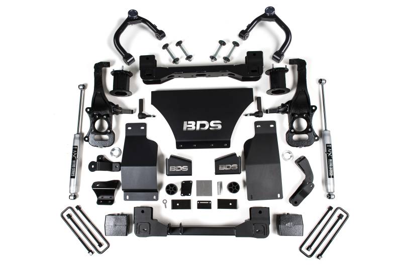 BDS steps up the performance and capability of the Chevy Silverado and GMC Sierra 1500 trucks with 6-inch suspension lift kit. Designed to improve stance, performance, and capability, this kit includes everything necessary to set your truck up right with clearance for up to 35" tires