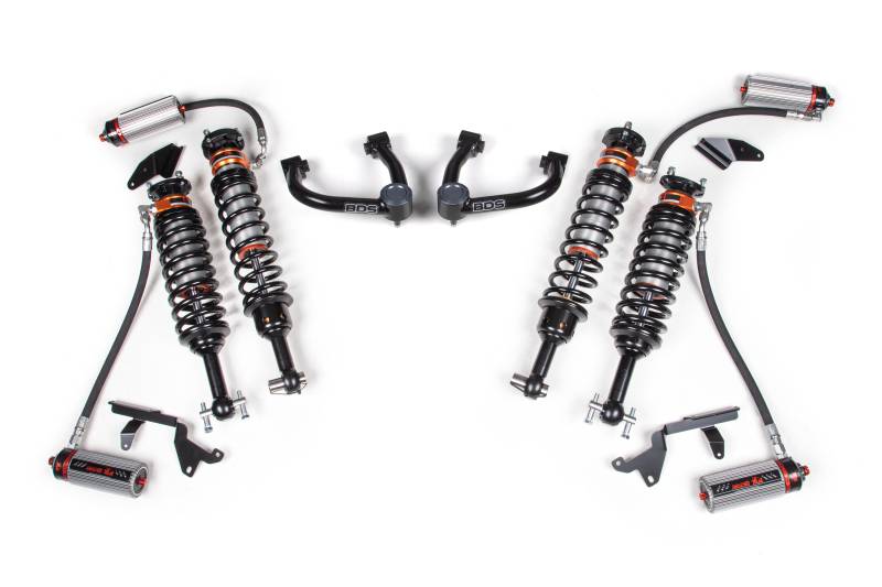 Up front the lift kit includes FOX Factory Race Series 3.0 coil-over shocks and heavy duty tubular upper control arms for increased strength. In the rear, BDS utilizes a complementary set of FOX 3.0 Factory Race Series coil-over shocks for an improved ride.