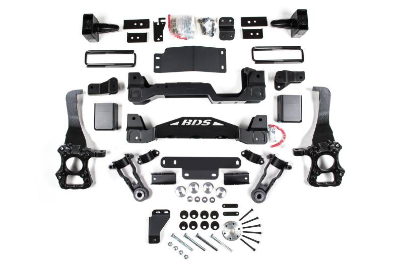 This kit takes advantage of BDS's tried and true high-clearance design for improved ground clearance, strength, and offroad protection while correcting suspension and steering geometry for great on-road handling characteristics.