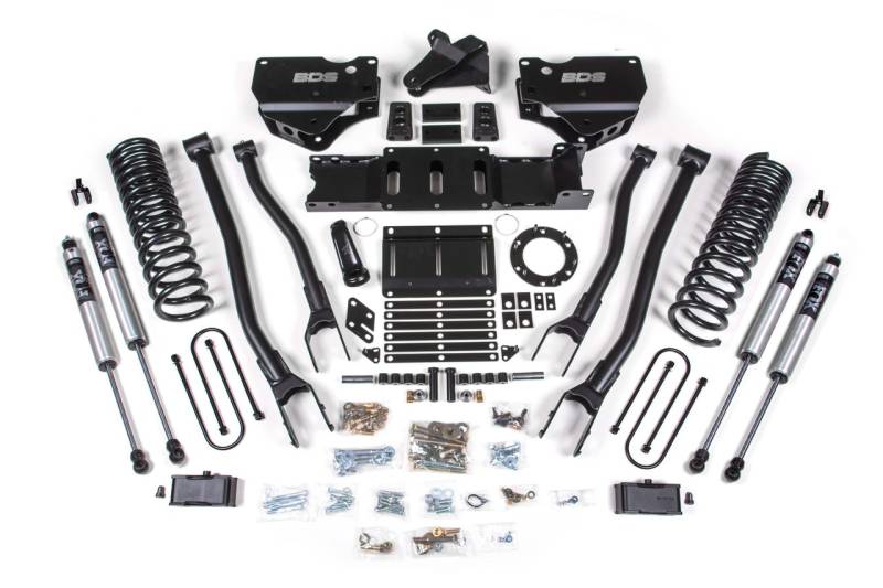 Raise your RAM 3500 gas powered truck to the next heights with this 4-inch lift kit with 4-Link conversion from BDS Suspension. Designed to improve stance, performance, and capability, this kit includes everything necessary to set your truck up right with clearance for up to 35 inch Tires.