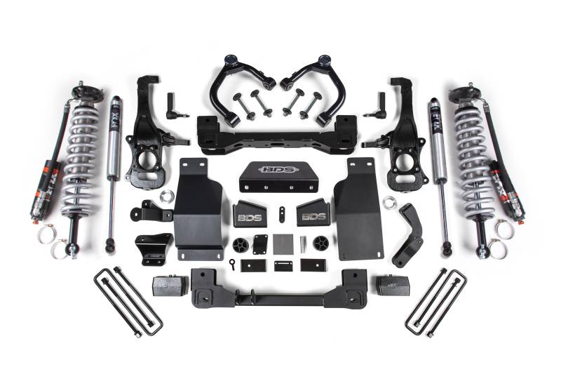 Up the ante in performance with your Chevy Silverado and GMC Sierra 1500 truck by installing the BDS 4-inch lift kit'suspension featuring FOX 2.5 Performance Elite coil-over shocks. Designed to improve stance, performance, and capability, this kit includes everything necessary to set your truck up right with clearance for up to 33 inch Tires.