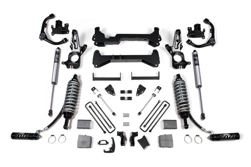 This kit leverages BDS's proven high-clearance design for enhanced ground clearance, strength, and off-road protection, while also correcting suspension and steering geometry for superior on-road handling characteristics. Up front, the kit utilizes FOX 2.5 coilover shocks, heavy-duty tubular upper control arms, high-arched 1/4-inch-thick steel crossmembers, along with a multipiece differential relocation bracket and heavy-duty skid plates built for off-road protection. Steering geometry is corrected at the new taller ride height with CNC-machined ductile iron steering knuckles. These, combined with the provided sway bar drops, bump stop extensions, brake line brackets, CV spacers, supplied hardware, and more, provide a comprehensive front suspension lift ready for whatever you throw at it.