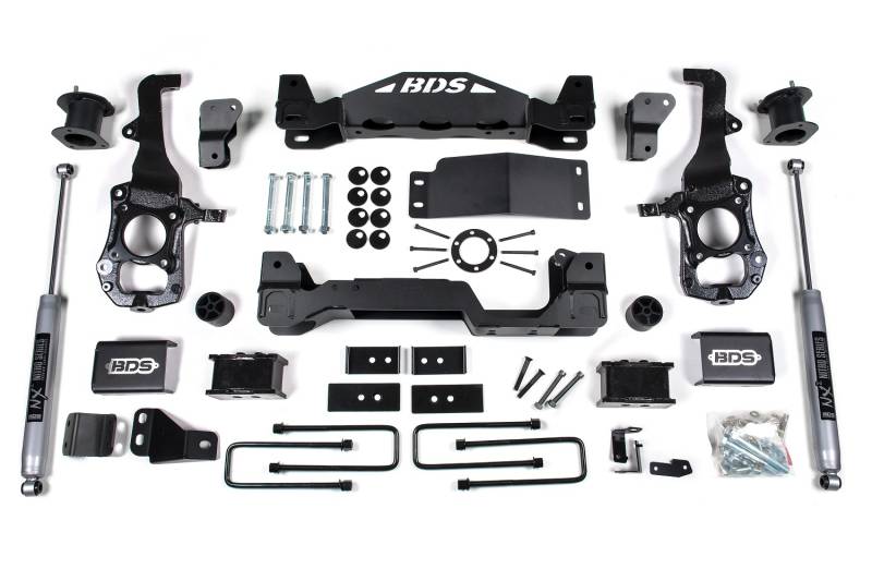 BDS steps up the performance and capability of the 2021-2024 Ford F150 trucks with 6-inch suspension lift kits. Designed to improve stance, performance, and capability, this kit includes everything necessary to set your truck up right with clearance for up to 37 inch Tires.