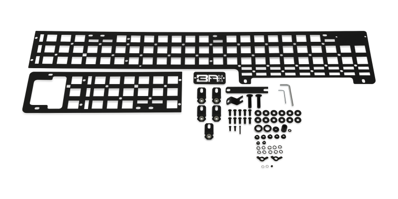 Front Bed Molle System, Tacoma Introducing our versatile mounting system, designed to accommodate RotopaX containers, Hi-Lift jacks, Quick Fist mounts, MOLLE bags, and other accessories. This system includes Hi-Lift mounting hardware and mounts behind the utility rail, allowing full use with most accessories and tonneau covers. Constructed from 3mm formed steel, it features an easy bolt-on installation and fits both driver and passenger sides. The two-piece design works with short or long beds, although it does not fit Toyota OE bed light systems. Finished with a durable two-stage light texture black powder coat, this mounting system combines strength and functionality. 3mm Formed Steel 1 Pc Design For Maximum Strength Easy Bolt On Installation Accommodates Rotopax Containers, Hi-Lift Jack, Quickfist Mounts and Other Accessories Includes Hi-Lift Mounting Hardware