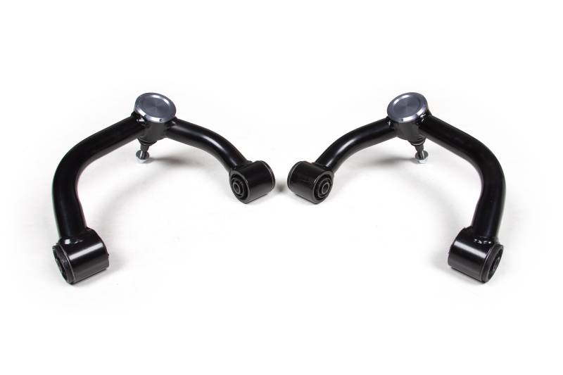 These UCAs can be used with BDS lift kits and other lift and leveling kits on the market. The frame mounting ends feature durometer-specific rubber bushings and premium-quality ball joints for smooth, quiet operation and superior durability compared to arms featuring uniballs, poly bushings, or heims.