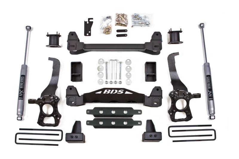 Improve the performance and capability of your 2014 Ford F150 2WD truck by installing a 4-inch suspension lift kit by BDS. Designed to improve stance, performance, and ability of the vehicle, this kit includes everything necessary to set your truck up right with clearance for up to 35" tires.