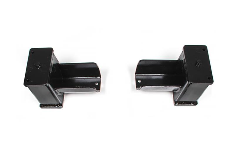 Upgrade your trucks rear suspension with premium cast iron lift blocks. These high quality 4" cast iron lift blocks are specially designed to lift the rear of leaf spring trucks. They come finished in a black e-coating and use a bump stop wing to maintain proper suspension travel once installed. Sold in pairs.