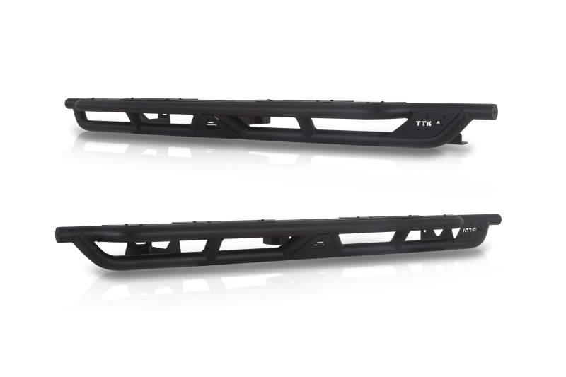 2020-2024 Jeep Gladiator JT Terra Series Side Step 2020-2024 Jeep Gladiator JT Terra Series Side Step 8 Gauge Steel; Frame mounted Heavy-Duty Construction: Built from high-strength steel with a rugged, corrosion-resistant coating, the Terra Series side steps are designed to wit'stand the toughest off-road conditions while offering long-lasting durability. Enhanced Accessibility: Wide, non-slip step pads ensure a secure footing, making it easier to enter and exit your Jeep, even after long days on the trail or when paired with larger tires. Trail-Ready Protection: The sturdy design not only provides a solid step but also doubles as rock sliders, protecting your Gladiator’s lower body from rocks, debris, and obstacles on the trail. Sleek, Aggressive Design: With an angular, modern profile, the Terra Series side steps complement your Jeep's rugged appearance while providing superior functionality.