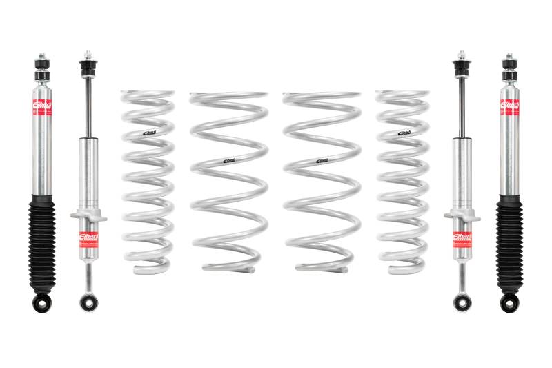 Set of 4 Shocks + 4 Springs Looking for a lift kit system that will achieve optimal performance both on and off-road? The Eibach PRO-TRUCK-LIFT Stage 1 system was designed and engineered to do just that. This advanced suspension system is engineered to deliver maximum ride height without compromising the integrity of your factory bushings, ball joints, and other components. Matched system of lift springs and shocks designed for increased travel and performance Provides balanced ride quality, control and off-road capability Manufactured by Eibach using off-road race spring technology and OE quality standards Shocks individually tested for matched performance in each corner Made In U.S.A.