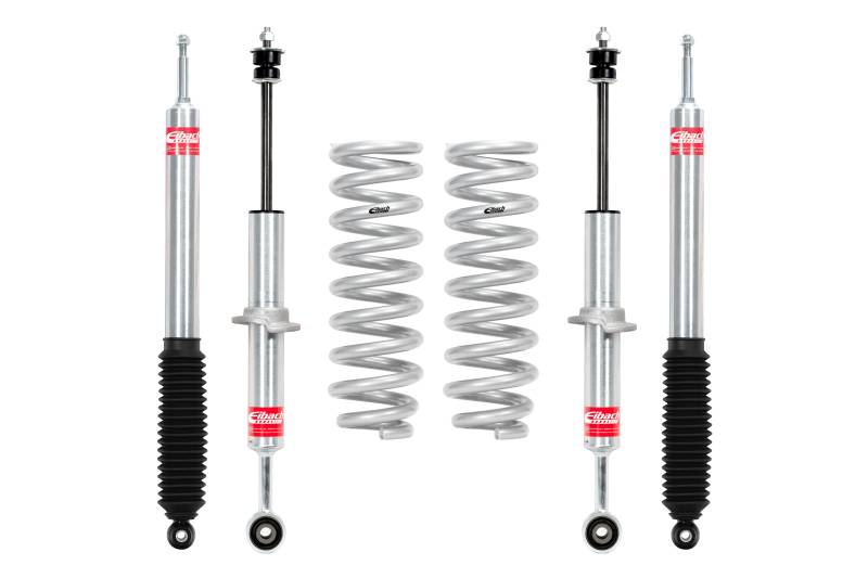 Set of 4 Shocks + 2 Front Springs Looking for a lift kit system that will achieve optimal performance both on and off-road? The Eibach PRO-TRUCK-LIFT Stage 1 system was designed and engineered to do just that. This advanced suspension system is engineered to deliver maximum ride height without compromising the integrity of your factory bushings, ball joints, and other components. Matched system of lift springs and shocks designed for increased travel and performance Provides balanced ride quality, control and off-road capability Manufactured by Eibach using off-road race spring technology and OE quality standards Shocks individually tested for matched performance in each corner Made In U.S.A.