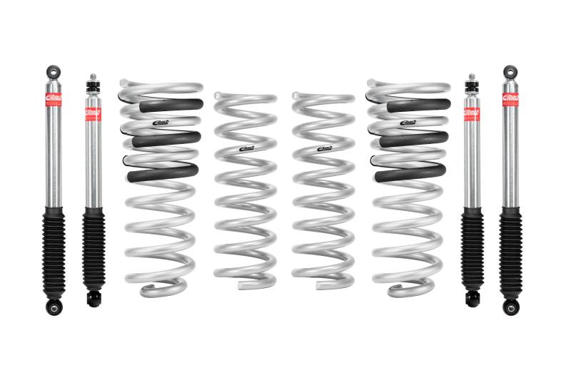 Set of 4 Shocks + 2 Front Springs Matched system of lift springs and shocks designed for increased travel and performance Provides balanced ride quality, control and off-road capability Manufactured by Eibach using off-road race spring technology and OE quality standards Shocks individually tested for matched performance in each corner Made In U.S.A.