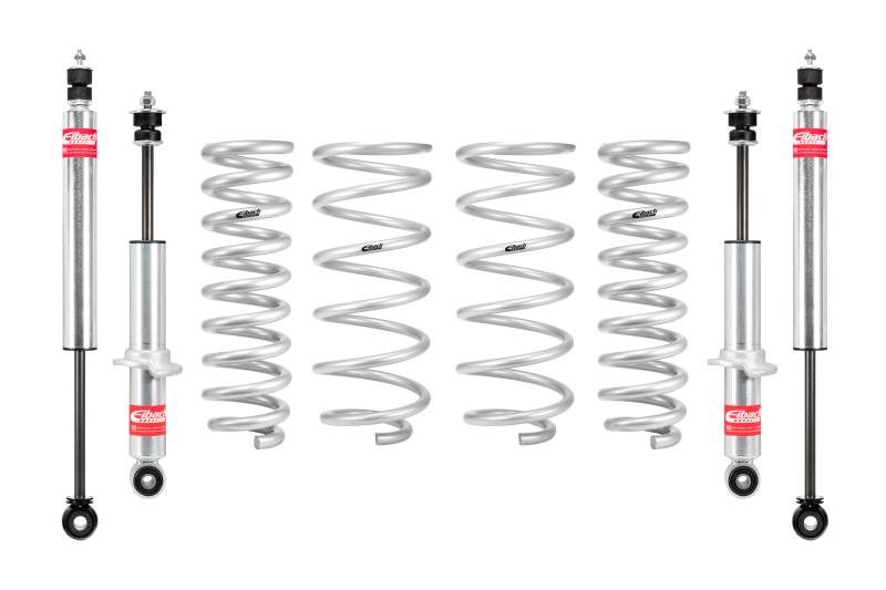 Set of 4 Shocks + 4 Springs Looking for a lift kit system that will achieve optimal performance both on and off-road? The Eibach PRO-TRUCK-LIFT Stage 1 system was designed and engineered to do just that. This advanced suspension system is engineered to deliver maximum ride height without compromising the integrity of your factory bushings, ball joints, and other components. Matched system of lift springs and shocks designed for increased travel and performance Provides balanced ride quality, control and off-road capability Manufactured by Eibach using off-road race spring technology and OE quality standards Shocks individually tested for matched performance in each corner Made In U.S.A.