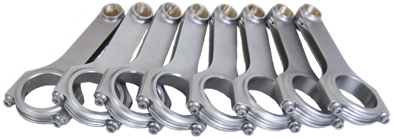 Forged 4340 steel H-Beam connecting rods are forged from a two-piece forging and feature a fully machined and shot-peened surface. Sizing is held to exact tolerances. Sold as a weight-matched set. Recommended for competition use.