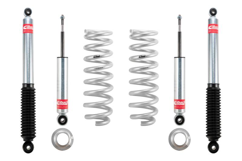 Set of 4 Shocks + 2 Front Springs Looking for a lift kit system that will achieve optimal performance both on and off-road? The Eibach PRO-TRUCK-LIFT Stage 1 system was designed and engineered to do just that. This advanced suspension system is engineered to deliver maximum ride height without compromising the integrity of your factory bushings, ball joints, and other components. Matched system of lift springs and shocks designed for increased travel and performance Provides balanced ride quality, control and off-road capability Manufactured by Eibach using off-road race spring technology and OE quality standards Shocks individually tested for matched performance in each corner Made In U.S.A.