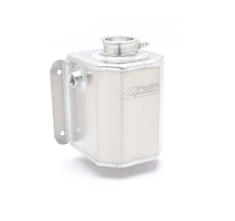 Canton 80-200C Aluminum Expansion Fill Tank, Universal 1.75 Qt. Chamfered Style This Coolant Expansion Fill Tank is 1.75 Quart. Size: 6" Tall, 4-1/2" Wide, 4-1/2" Deep. Side Port: 3/8" N.P.T. Bottom Port: 1/2" N.P.T. This Canton expansion tank is built with .100" thick aluminum and has a billet aluminum neck with a barbed overflow fitting and accepts standard radiator caps. .100" Aluminum Fabrication TIG Welded Billet Aluminum Machined Radiator Neck Built in Mounting Bracket Chamfered Style Gives Improved Aesthetic