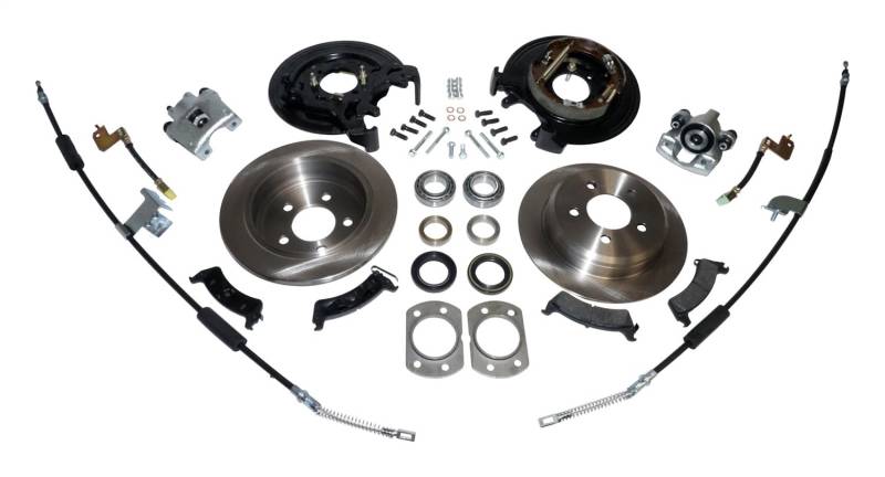 Drums and Rotors The RT Off-Road Disc Brake Conversion Kits convert a factory Dana 44 rear axle from drum to disc brake. This is a must for vehicles with oversized tires and wheels as well as increased weight from bumpers, winches, etc. These bolt-in kits are designed for vehicles without ABS. They include pre-assembled backing plates with Parking Brake Shoes and hardware, Calipers, Pads, Rotors, Hoses, Parking Brake Cables, an Axle Shaft Bearing and Seal Kit, and all Hardware needed for installation. Converts Rear Drum Brakes To Disc Brakes Bolt-in Installation Increases Braking Power Will Not Work On Vehicles Equipped w/ABS
