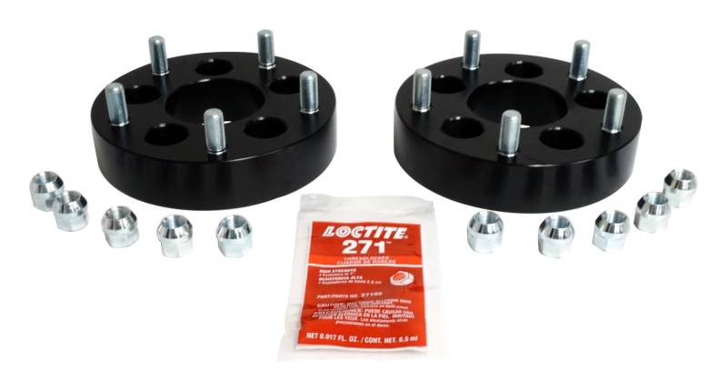Wheel RT Off-Roads Wheel Adapter Kits are a perfect solution for anyone wanting to expand their wheel choice. They allow the use of any 5 on 5.5" wheel to be installed on any vehicle with a 5 on 4.5" bolt pattern (example CJ-7 wheels on a TJ). They start as a 1.5" thick piece 6061 T6 aluminum. They are then machined and anodized black for corrosion resistance. From there Grade 8 studs are pressed into the adapters. Each set includes 2 spacers, 10 lug nuts, and thread locking compound. Wheel Adapter Set