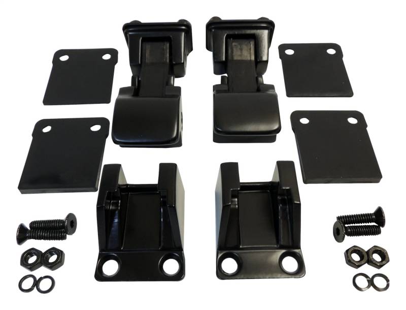 Hood Improve the look of any Jeep with RT Off-Roads Hood Catch Kit. This kit is designed to bolt in place of the OE hood catches. Each piece is constructed of stainless steel and is powder coated with a black finish. All necessary hardware is included for installation. Black Powder Coated Finish Modern Hood Catch Design To Update The Look Includes All Hardware Needed For Installation