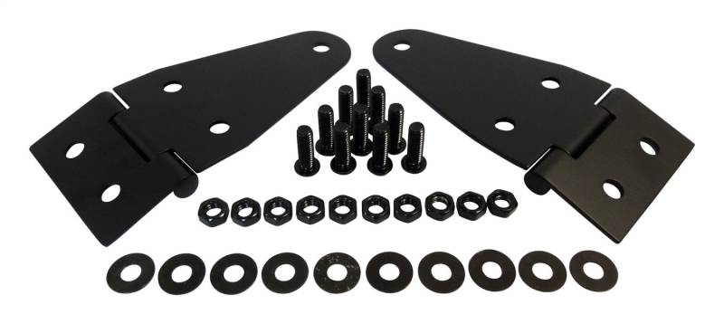 Hood Hinge Set, Left & Right, Matte Black, Powder Coated Stainless Steel RT Off-Roads Stainless Steel products offer optimal fit and finish while maintaining superior function. All brackets, hinges, and hardware are produced from corrosion resistant stainless steel. Each part is available in either a polished stainless steel or a rich black powder coat. Stainless Steel Construction Matte Black Powder Coat Finish Includes Hardware