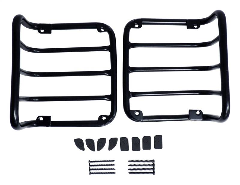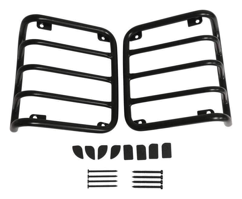 Lighting-Exterior RT Off-Roads light guards are the perfect solution to both personalizing and protecting the exposed and fragile stock tail lights. They constructed out of stainless steel and are coated with a rich black powder coat finish. The heavy stainless steel construction will protect the lights from limbs, stones, and other obstacles faced on the trail. Drilling is not required for installation. All hardware is included. Tail Light Guard Set