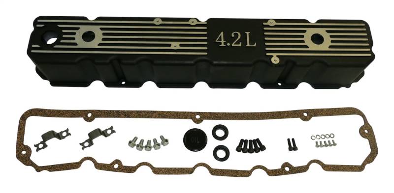 Black Aluminum Valve Cover Kit for 81-86 Jeep CJs, SJ, J-Series w/ 4.2L Engine RT Off-Roads Engine Valve Cover Kits are a direct replacement upgrade for your factory valve covers. Each valve cover is constructed out of aluminum, are available in an assortment of colors, or in bare aluminum. Increased internal clearance allows for the use of oversized camshafts and high clearance rocker arms. Each kit includes gasket, grommets, and additional installation hardware. Door Frame Set Durable Black Finish With Polished Fins And Engine Script Aluminum Construction Some Modification May Be Required