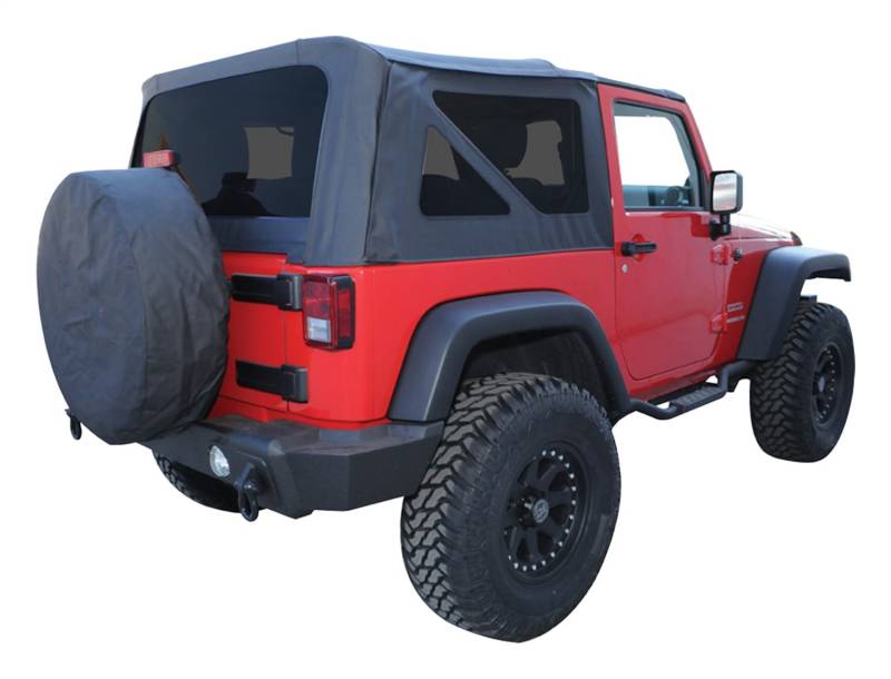 Black OEM Replacement Soft Top for 2007-09 JK Wrangler w/ 2-Full Steel Doors RT Off-Roads OEM Style Replacement Soft Tops are a perfect way of replacing a worn and drafty top with foggy windows and broken zippers. This direct replacement top includes cloth and either clear or tinted windows. Factory frames and hardware must be reused. Seat Cover Set Includes Top Windows And Upper Door Skins. Features Heavy-Duty Zippers And High Quality Vinyl Windows.