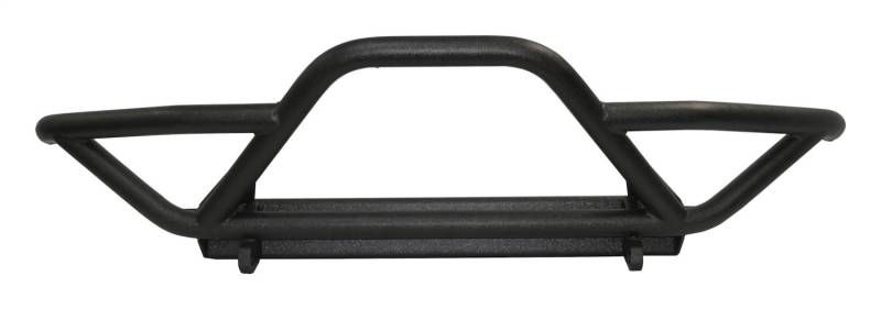 Black Textured Front Tube Bumper w/ Stinger for YJ & TJ Wranglers RT Off-Roads Heavy Duty Front Bumper is a full-width tube steel upgrade over the factory plastic bumper. Durable tube construction is protected with a thick powder coat finish. Front bumpers include winch mount while rear bumpers are available with a tire carrier. Front bumper include two integrated D-Ring mounts for recovery. Installs into the factory bumper mounting location using the factory hardware. Does not require any drilling or modification. Hd Bumper