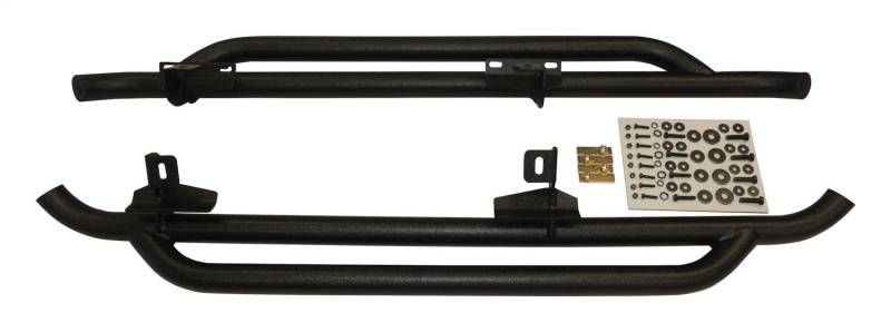 Rocker Panel RT Off-Roads heavy duty rocker panel guard set is a required upgrade for serious rock crawling off-road enthusiasts. The heavy duty tube steel construction protects the vehicles rocker panels from rocks, trees, and all other obstacles one may encounter on the trail. They are protected with a textured black powder coated finish that will provide years of protection. Kit includes both driver and passenger side rocker panel guards, all hardware needed to install, and installation instructions. Heavy Duty Tube Steel Construction Textured Black Powder Coat