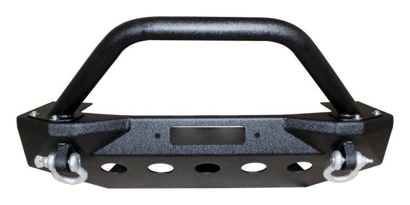 Stubby Front Winch Bumper for 2018+ Jeep JL Wrangler and JT Gladiator RT Off-Road's Heavy Duty Front Bumper is a heavy duty stubby plate steel upgrade over the factory plastic bumper. The 3/16" plate steel and tubular steel construction is protected with a durable textured black powder coat. The stubby width will drastically increase clearance on obstacles while off road as well as between the bumper and tire. The Bumper features a winch mount w/ fairlead mounting holes, D-Ring mounts with D-Rings, and additional holes for mounting lights. Installs into the factory bumper mounting locations using the included hardware. Does not require any drilling or modification. Stubby Front Winch Bumper for 2018+ Jeep JL Wrangler and JT Gladiator Features Stinger & Flush-Mount LED Lamps Includes 2 D-Rings and Hardware