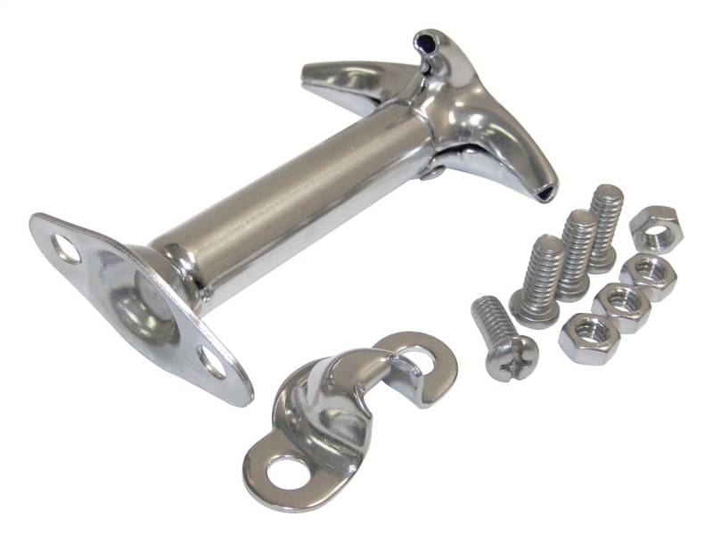 Stainless L or R Hood Catch Kit for 1941-1995 Jeep MB, CJs & YJ Wrangler Improve the look of any Jeep with RT Off-Roads Hood Catch Kit. This kit is designed to bolt in place of the OE hood catches. Each piece is constructed of stainless steel and is polished to a mirror finish. All necessary hardware is included for installation. Beach Topper One Kit Includes A Pair Of Hood Catches Includes All Hardware Need For Installation