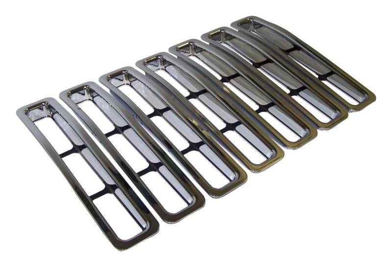 7 Piece Grille Insert Set for 1997-2006 Jeep TJ Wrangler, Chome Plastic, Snap-In Complete the factory grilles look with RT Off-Roads Grille Inserts. Every grille insert set includes seven primary inserts that either snap or bolt into place. All kits are sold complete and include everything you need for installation. Grille Insert Set