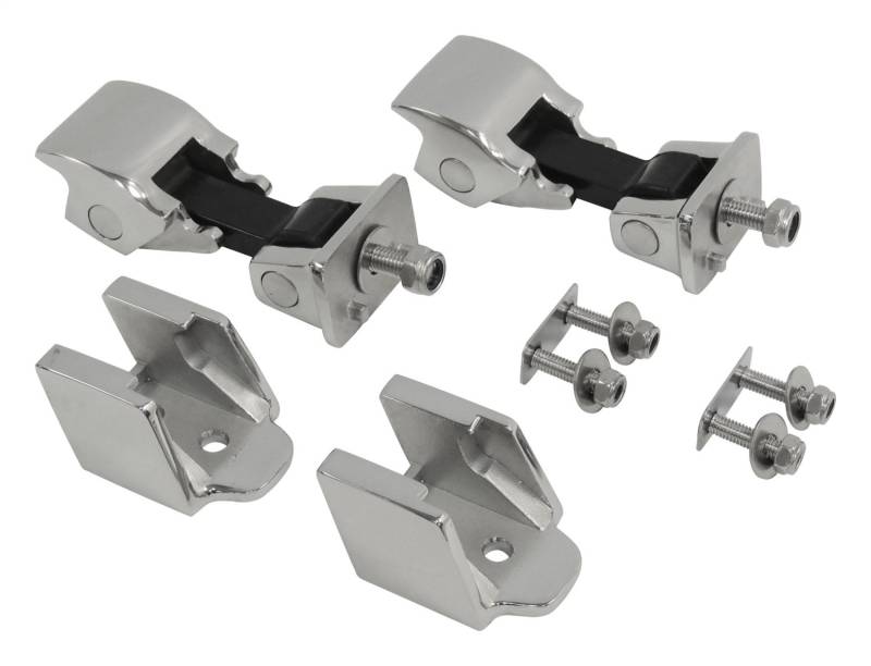 Left & Right Stainless Steel Hood Catch Kit for Jeep TJ Wrangler Improve the look of any JK with RT Off-Roads Hood Catch Kit. This kit is designed to bolt in place of the OE plastic hood catches. Each piece is constructed of stainless steel and is polished to a mirror finish. All necessary hardware is included for installation. Beach Topper Polished Stainless Steel Construction One Kit Includes A Pair Of Hood Catches