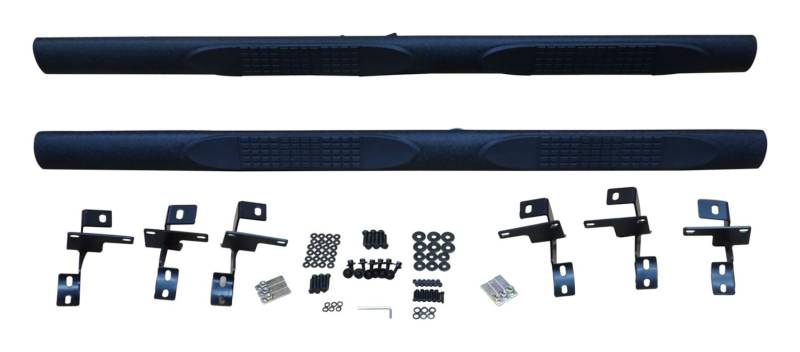 SIDE STEPS WITH TEXTURED POWDER COAT FINISH for 4 Door Jeep JK Wrangler RT Off-Roads Side Steps will make entering and exiting the vehicle much easier as well as improving side protection from obstacles. Installation is a breeze, using the factory body mounting bolts to mount the steps to the vehicle. Each kit includes left and right steps, mounting brackets, hardware, and installation instructions. Side Steps